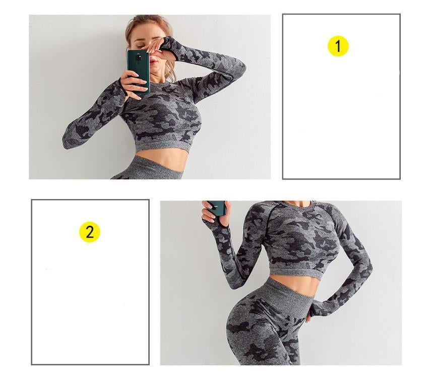 The high-waisted leggings provide excellent tummy control and a flattering silhouette, and the long-sleeve top offers added warmth and coverage. Whether you're hitting the yoga mat, running, or conquering a high-intensity workout, the Carmful Camo Set will empower you to perform your best.
